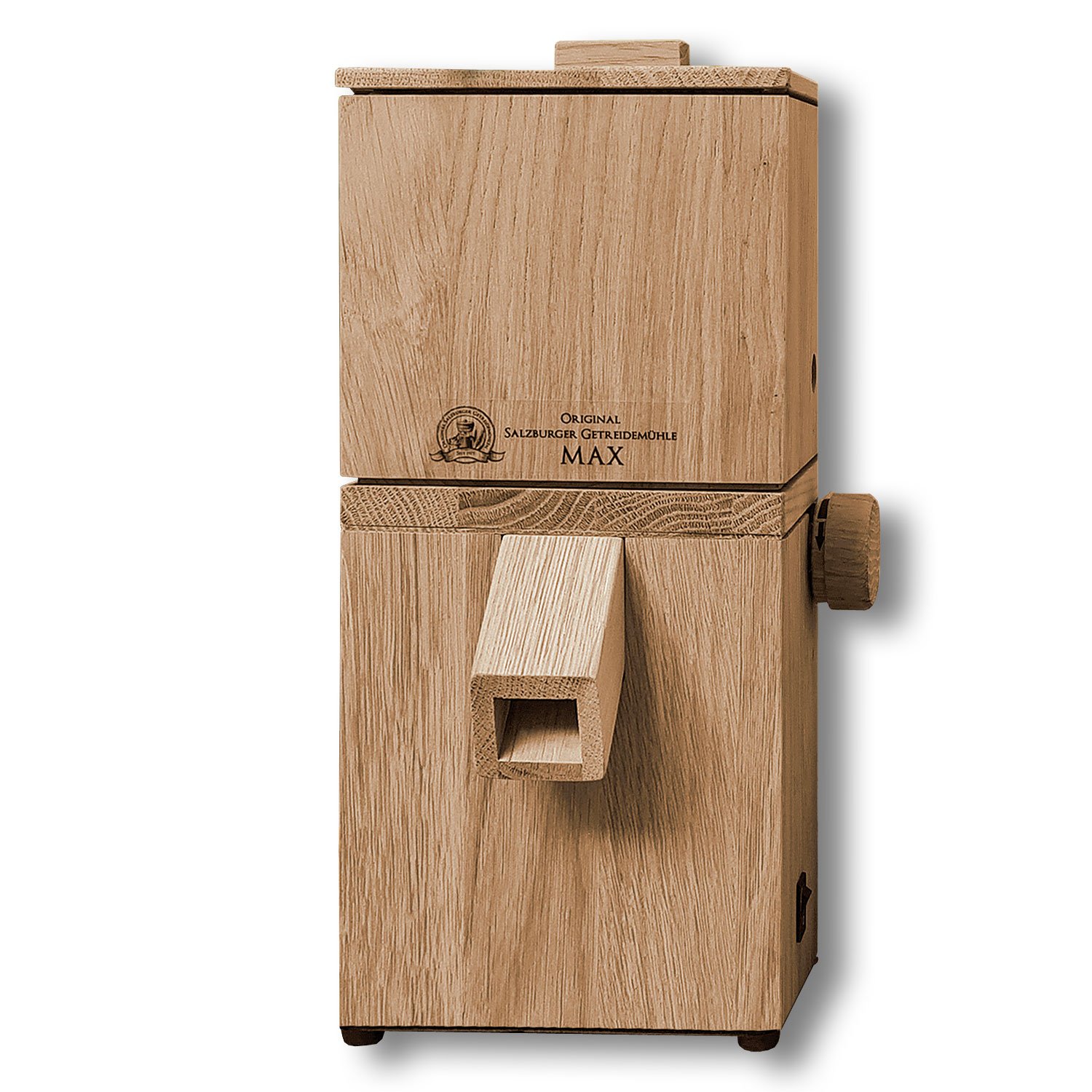 Hergestellt in Österreich, mit höchster Präzision und aus massivem Holz, ist diese Salzburger Mühle ein Meisterwerk der Handwerkskunst. Sie können zwischen einem Gehäuse aus Buche oder Eiche wählen – zwei edlen Hölzern, die nicht nur langlebig, sondern auch zeitlos schön sind. Die Mahlkammer besteht stets aus naturbelassenem Buchenholz, um Ihr Mehl frei von Kunststoffabrieb oder unerwünschten Rückständen zu halten.